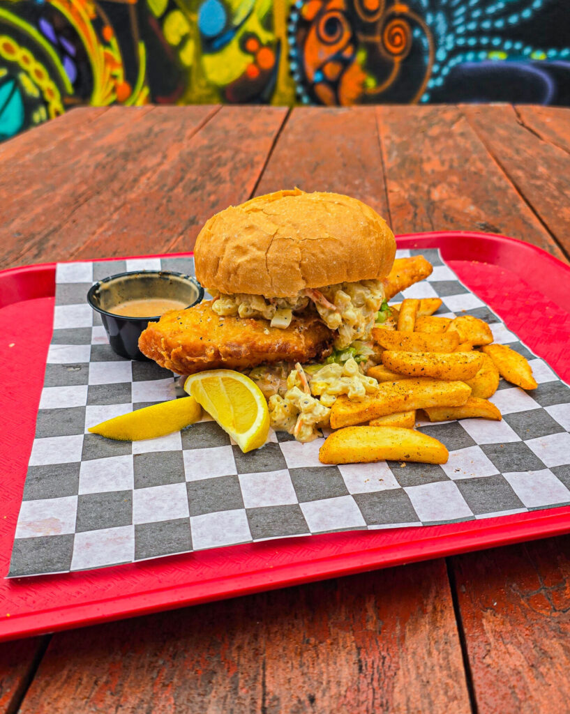 My friends at Pittsburgh Sandwich Society invited me to try the return of its Real Big Fish sandwich for this year’s fish fry season. They always go all out with delicious sandwiches. This year is a Beer-Battered Cod fillet and Mac Salad on a Breadworks Fish Bun, served with steak fries. The sandwich is available on Fridays through fish fry season at their spot at Strange Roots in Millvale.